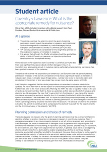 Title: | Coventry v Lawrence: What is the appropriate remedy for nuisance? |