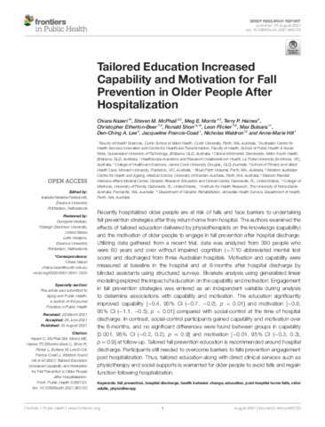 Tailored Education Increased Capability and Motivation for Fall Prevention in Older People After Hospitalization.