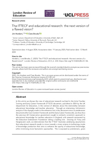 | Title: | The ITTECF and educational research: the next version of a flawed vision? |