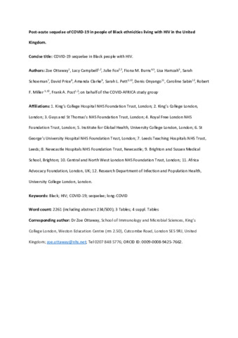 Title: | Post-acute sequelae of COVID-19 in people of Black ethnicities living with HIV in the United Kingdom |