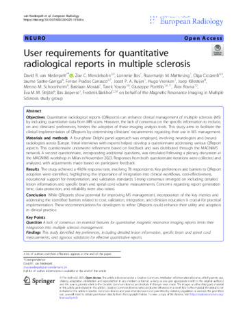 | Title: | User requirements for quantitative radiological reports in multiple sclerosis |