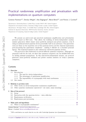 Title: | Practical randomness amplification and privatisation with implementations on quantum computers |