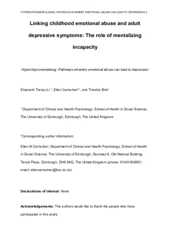 Linking childhood emotional abuse and adult depressive symptoms: The role of mentalizing incapacity.