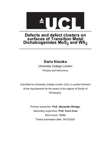 | Title: | Defects and defect clusters on surfaces of Transition Metal Dichalcogenides MoS₂ and WS₂ |