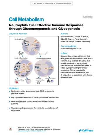 Title: | Neutrophils Fuel Effective Immune Responses through Gluconeogenesis and Glycogenesis |