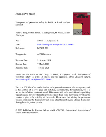 | Title: | Perceptions of pedestrian safety in Delhi: A Rasch analysis approach |