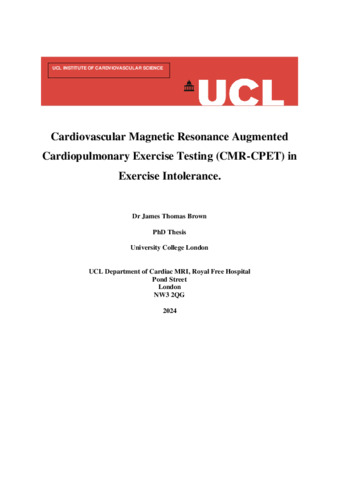 1.1 Background Exercise intolerance is common to many diseases. Investigation of exercise intolerance frequently isolates the respiratory and/or cardiovascular systems, but this approach neglects other systems that can contribute significantly . Furthermore, many investigations are performed in the resting state. Without assessing all relevant systems in the exercise state, any understanding of exercise intolerance would be incomplete. Combining Cardiovascular Magnetic Resonance Imaging (CMR) and Cardiopulmonary Exercise Testing (CPET) - “CMR-CPET” - allows simultaneous and comprehensive measurement of physiological metrics that determine exercise capacity. CPET allows measurement of oxygen consumption (VO2) and carbon dioxide production (VCO2), and derivation of various metrics associated with respiratory and metabolic function. CMR allows accurate measurement of cardiac output (CO) and ventricular size and function. From these two tests, arteriovenous blood oxygen content gradients (avO2) can be calculated. This metric represents tissue oxygen extraction at the skeletal muscle level. A comprehensive assessment of the respiratory, cardiovascular and musculoskeletal system function is therefore possible with this technique at rest, and importantly, during exercise. 1.2 Aims In this thesis, using CMR-CPET, I aimed to assess the mechanisms affecting exercise tolerance in different patient groups. Firstly, I measured these CMR-CPET metrics at rest and at peak exercise, examining differences between groups. Secondly, I assessed if these metrics provided prognostic information in patients with systemic sclerosis-associated pulmonary arterial hypertension (SSc-PAH). 1.3 Results and Conclusions I demonstrated that there are differences in tissue oxygen extraction at peak exercise which may explain exercise capacity differences between subtypes of pulmonary arterial hypertension, and differences in stroke volume augmentation during exercise in patients with prolonged COVID-19 symptoms. Finally, I showed that in SSc-PAH, right ventricular contractile reserve provides additional prognostic information to current risk stratification tools. CMR-CPET aids our understanding of the mechanisms causing exercise intolerance, provides novel biomarkers and identifies potential treatment targets.