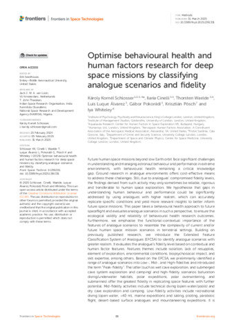 Title: | Optimise behavioural health and human factors research for deep space missions by classifying analogue scenarios and fidelity |