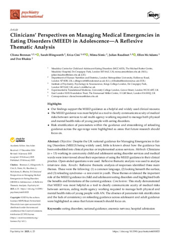 Title: | Clinicians’ Perspectives on Managing Medical Emergencies in Eating Disorders (MEED) in Adolescence—A Reflexive Thematic Analysis |