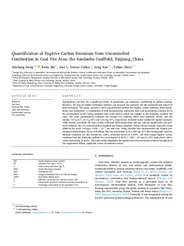 Quantification of Fugitive Carbon Emissions from Uncontrolled Combustion in Coal Fire Area: the Sandaoba Coalfield, Xinjiang, China.