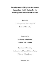 | Title: | Development of High-performance Vanadium Oxide Cathodes for Rechargeable Metal-ion Batteries |