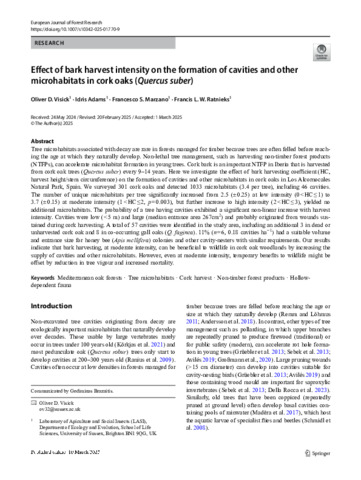 | Title: | Effect of bark harvest intensity on the formation of cavities and other microhabitats in cork oaks (Quercus suber) |