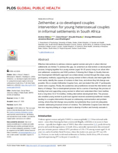 Title: | Zethembe: a co-developed couples intervention for young heterosexual couples in informal settlements in South Africa |
