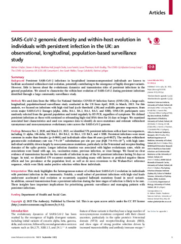 | Title: | SARS-CoV-2 genomic diversity and within-host evolution in individuals with persistent infection in the UK: an observational, longitudinal, population-based surveillance study |