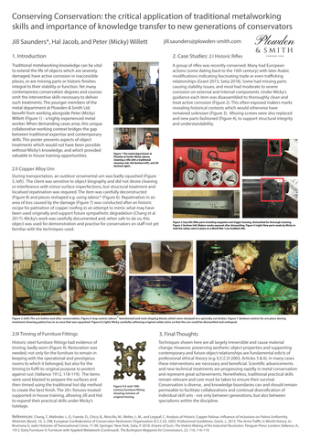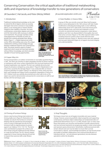 Title: | Conserving Conservation: the critical application of traditional metalworking skills and importance of knowledge transfer to new generations of conservators |