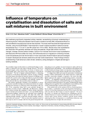 Influence of temperature on crystallisation and dissolution of salts and salt mixtures in built environment.