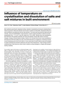 Title: | Influence of temperature on crystallisation and dissolution of salts and salt mixtures in built environment |