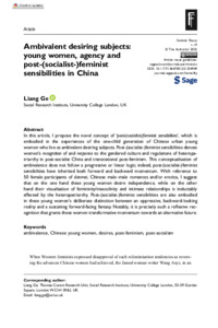 | Title: | Ambivalent desiring subjects: young women, agency and post-(socialist-)feminist sensibilities in China |