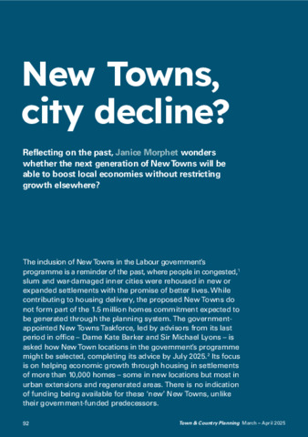 Reflecting on the past, Janice Morphet wonders whether the next generation of New Towns will be able to boost local economies without restricting growth elsewhere?