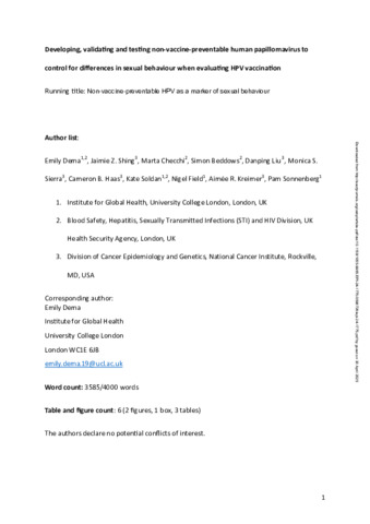 | Title: | Developing, validating and testing non-vaccine-preventable human papillomavirus to control for differences in sexual behaviour when evaluating HPV vaccination |