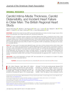 Title: | Carotid Intima-Media Thickness, Carotid Distensibility, and Incident Heart Failure in Older Men: The British Regional Heart Study |