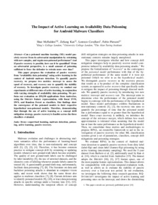 | Title: | The Impact of Active Learning on Availability Data Poisoning for Android Malware Classifiers |