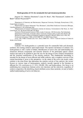 Title: | Hydrogenation of CO₂ for sustainable fuel and chemical production |