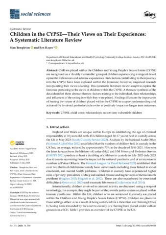 | Title: | Children in the CYPSE - their views on their experiences: A Systematic Literature Review |