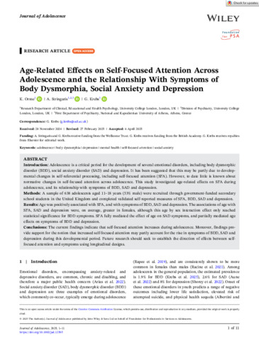 Krebs_Journal of Adolescence - 2025 - Orme - Age‐Related Effects on Self‐Focused Attention Across Adolescence and the.pdf Download (754kB) | Preview |
