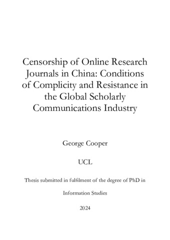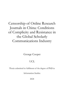| Title: | Censorship of Online Research Journals in China: Conditions of Complicity and Resistance in the Global Scholarly Communications Industry |