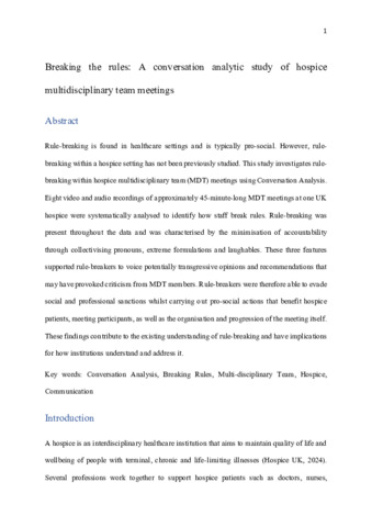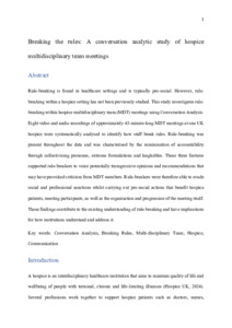 Title: | Breaking the rules: A conversation analytic study of hospice multidisciplinary team meetings |