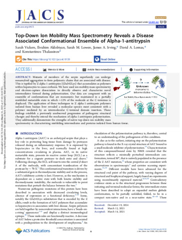 Title: | Top-Down Ion Mobility Mass Spectrometry Reveals a Disease Associated Conformational Ensemble of Alpha-1-antitrypsin |