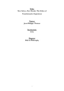 Title: | New Selves, New Morals: The Ethics of Transformative Experience |