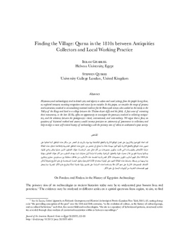 Title: | Finding the Village: Qurna in the 1810s between Antiquities Collectors and Local Working Practice |