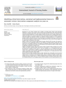 Title: | Identifying critical intervention, contextual and implementation features in systematic reviews: Intervention component analysis ten years on |
