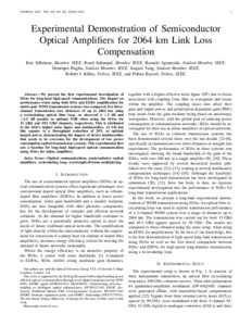 | Title: | Experimental Demonstration of Semiconductor Optical Amplifiers for 2064 km Link Loss Compensation |