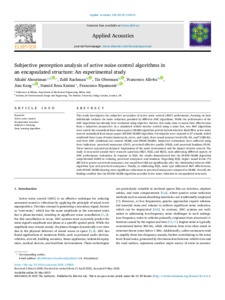Title: | Subjective perception analysis of active noise control algorithms in an encapsulated structure: An experimental study |