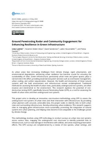 | Title: | Ground Penetrating Radar and Community Engagement for Enhancing Resilience in Green Infrastructure |