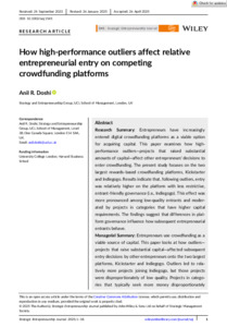 Title: | How high‐performance outliers affect relative entrepreneurial entry on competing crowdfunding platforms |