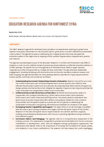 FINAL _ ERICC Working Paper _ Education Research Agenda for Northwest Syria.pdf - Published Version Download (1MB) | Preview |