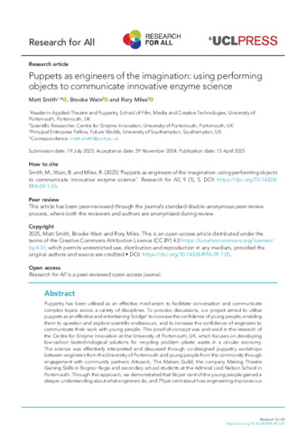Title: | Puppets as engineers of the imagination: using performing objects to communicate innovative enzyme science |