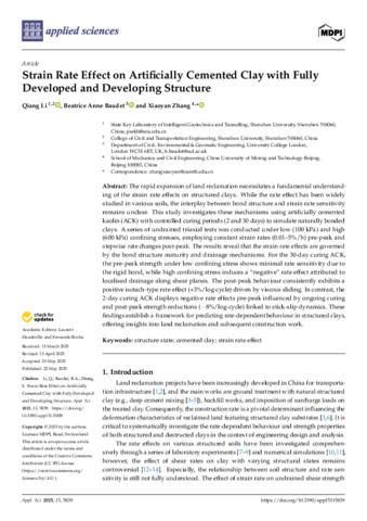 Title: | Strain Rate Effect on Artificially Cemented Clay with Fully Developed and Developing Structure |