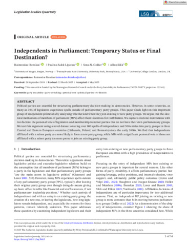 Title: | Independents in Parliament: Temporary Status or Final Destination? |