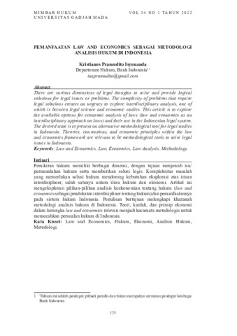 Title: | Pemanfaatan Law and Economics Sebagai Metodologi Analisis Hukum Di Indonesia |