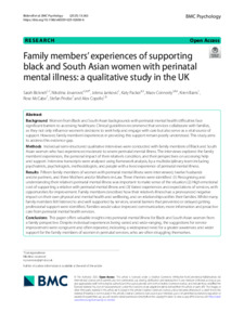 Family members’ experiences of supporting black and South Asian women with perinatal mental illness: a qualitative study in the UK.