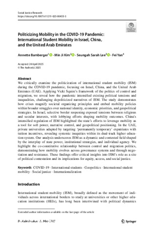Title: | Politicizing Mobility in the COVID-19 Pandemic: International Student Mobility in Israel, China, and the United Arab Emirates |