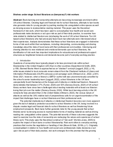 Title: | Shelves under siege: School librarians as (temporary?) risk workers |