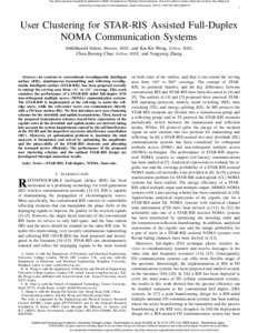 User Clustering for STAR-RIS Assisted Full-Duplex NOMA Communication Systems.
