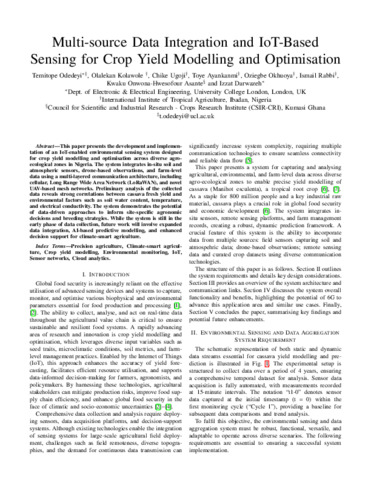 | Title: | Multi-source Data Integration and IoT-Based Sensing for Crop Yield Modelling and Optimisation |