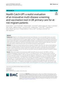 | Title: | Health Catch-UP!: a realist evaluation of an innovative multi-disease screening and vaccination tool in UK primary care for at-risk migrant patients |